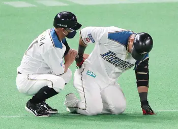 日本ハム・中田もアクシデント 一塁への走塁で右腰押さえ倒れこむ 担架で退場