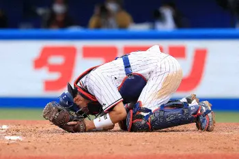 ヤクルト中村 ファウルがマスクを直撃し途中交代