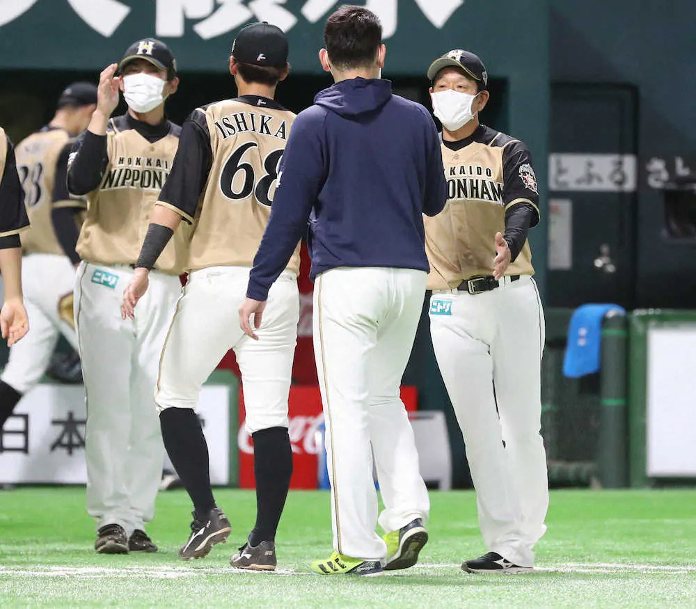 日本ハムは全9イニングで走者を出しながら3併殺に2つの送りバント失敗もあり、10残塁の拙攻で2試合連続引き分けに終わった。追加点を奪うのに苦しんだ栗山監督は「形をつくることがいいのか、悪いのかと考えさせられた試合でもあった。点を取らないといけない試合。昨日に続いて勝ちきれなかった」と悔しがった。