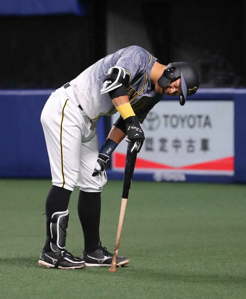 阪神・佐藤輝が表した「悔しさ」と「激情」 9回好機で三振に倒れ、バットをたたきつける