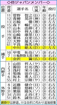 「すぐ代わり、とはいかない。コーチと話して決めていきたい」と代替選手の選考を進める。左の救援となると、楽天・松井や巨人・高梨らが候補に挙がる。一方で「本当に後ろが必要なのか。そこも含めこれからまた議論する」とも話した。負傷で離脱していたソフトバンク・千賀ら状態を上げてきた候補選手もいる。同志たちの無念さも背負い、歩みを進めるしかない。(後藤 茂樹)