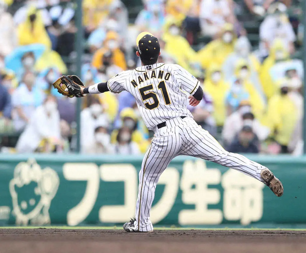 <神・D(11)> 8回無死、宮崎のゴロで失策を犯す阪神・中野(撮影・大森 寛明)
