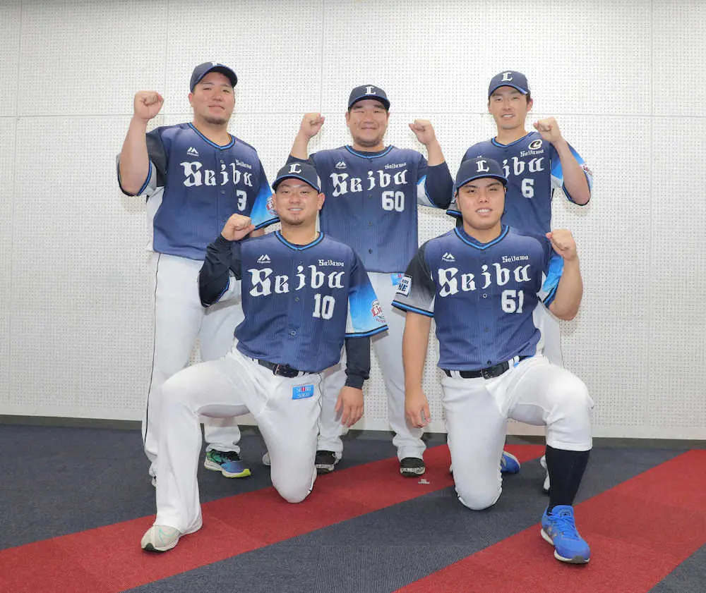 オールスターファン投票選出され活躍を誓う(前列左から)森、平良(後列左から)山川、中村、源田