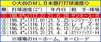 大谷のMLB本塁打打球速度 Photo by スポニチ エンゼルス・大谷 初NY弾!3年ぶりヤンキースタジアムで26号「しっかり振… ギャラリーで見る この記事のフォト 2021年06月30日の画像一覧 もっと見る 2021年06月30日の画像をもっと見る