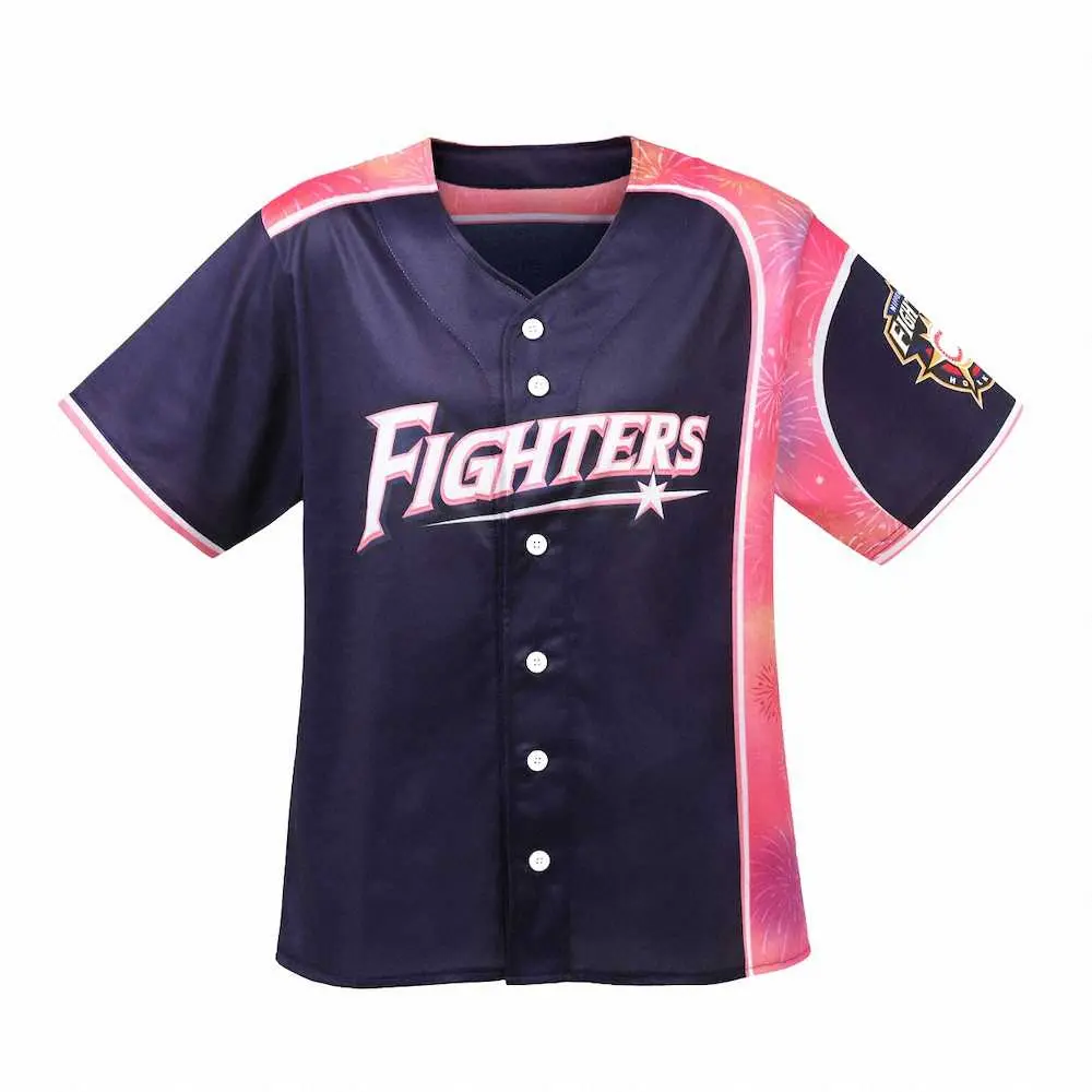 また、イベント開催に合わせて「Fighters Girls Series 2021―胸きゅんFestival―」限定のユニホームを販売する。北海道の夏に、夜空に咲く鮮やかな花火をイメージしたユニホームで、ボディは晩夏の心地よい夜空をイメージしたネイビー色。夜空に色鮮やかに咲く肩口の花火とのコントラストが特徴だ。