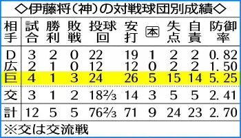 阪神・伊藤将の対戦球団別成績 Photo by スポニチ 阪神・伊藤将 まさか自己ワースト6失点 悔しすぎる巨人戦3連敗「チーム… ギャラリーで見る この記事のフォト 2021年07月11日の画像一覧 もっと見る 2021年07月11日の画像をもっと見る