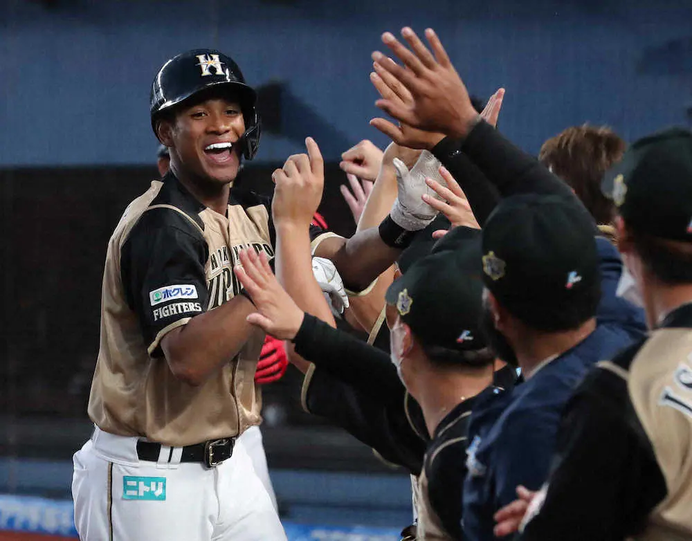 5回、藤原が右翼を守る自身の頭を越える同点ソロを放った。「凄く意識している。今年同級生がいろんなチームで試合に出ているので、凄く刺激を受けながらやっている。同級生に本塁打数で負けたくないので意識していた」。万波のその思いが表れたのが直後の6回の打席だった。