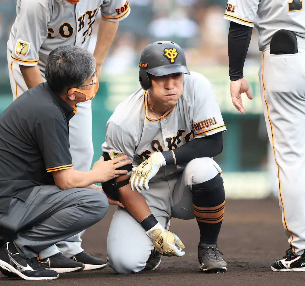巨人・梶谷隆幸外野手(32)が、10日の阪神14回戦(甲子園)の初回に右手甲に死球を受けて途中交代。試合中に兵庫県西宮市内の病院に直行し、「右第3中手骨骨幹部骨折」と診断された。全治は不明だが1カ月以上の離脱は避けられず、8月13日に再開する後半戦に間に合うかは微妙な状況だ。