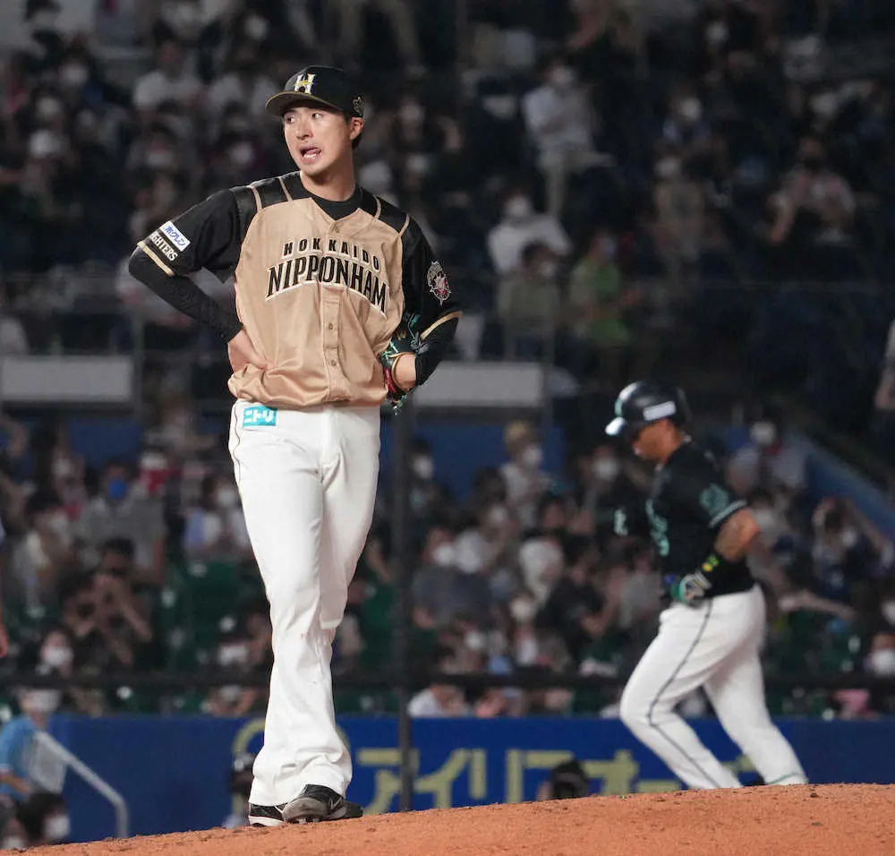 日本ハムの上沢が天敵のロッテ・マーティンにまたしてもやられた。万波の2ランで勝ち越した直後の6回。この回先頭の角中を四球で歩かせるなど、制球にばらつきが出始め、マーティンに対しカウント3―0からの4球目だった。内角へのカットボールを強振され、右翼ポール際へ飛び込む同点2ランを被弾した。