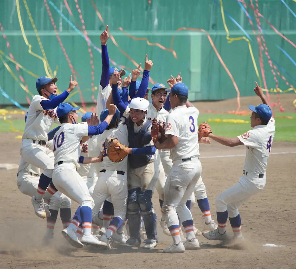 《渡辺148球熱投》エース渡辺翔真(3年)が148球の熱投。4失点で完投し、自らの決勝打で4年ぶりの甲子園に導いた。9安打を浴び、2度追いつかれたが「一イニング一イニングできることを」と勝ち越しは許さない。同点の8回無死満塁では「来た球を打ち返そう」と勝ち越しの右前適時打を放った。関口監督は「一番頼りになる。競った時点で最後まで渡辺と決めていた。我慢強く抑えてくれた」と称えた。