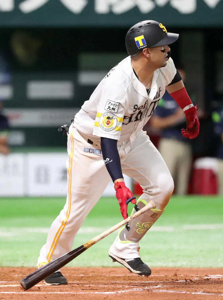 <ソ・ヤ>初回1死、中越え二塁打を放ったアルバレスは塁上で喜ぶ(撮影・中村 達也) Photo by スポニチ グラシアル代役に名乗り!!ソフトバンク・アルバレス猛アピ2安打 工藤監督… ギャラリーで見る この記事のフォト 2021年08月01日の画像一覧 もっと見る 2021年08月01日の画像をもっと見る