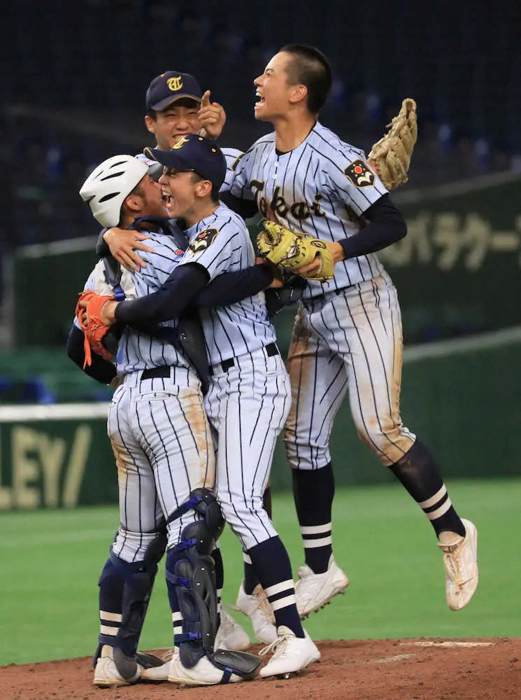 「(今春の)センバツの時と似たような感覚だった。(東京ドームでも)打つことができて、驚きとうれしい気持ちです」。序盤から点の取り合いとなり、3―3で迎えた4回1死一、三塁から高校通算21号となる決勝3ラン。今春のセンバツでは1回戦の聖カタリナ学園戦で左越えに大会通算800号となるメモリアルアーチを放った男が、東海大菅生初となる春夏連続甲子園出場に導いた。