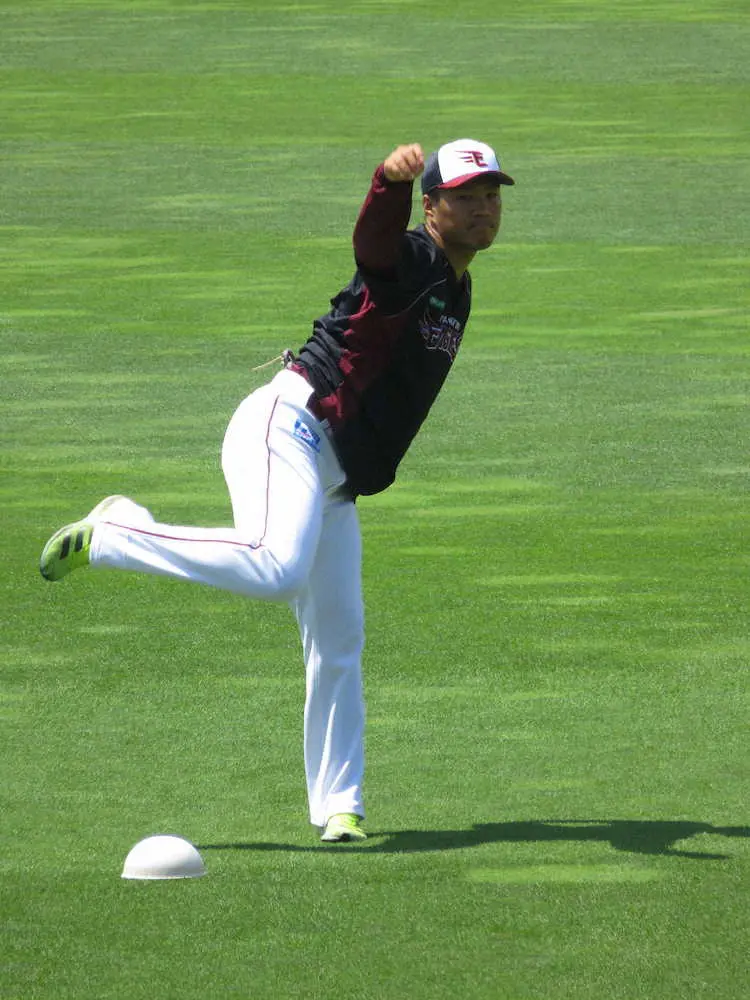先発投手練習で登板前日の調整を行う楽天・則本昂
