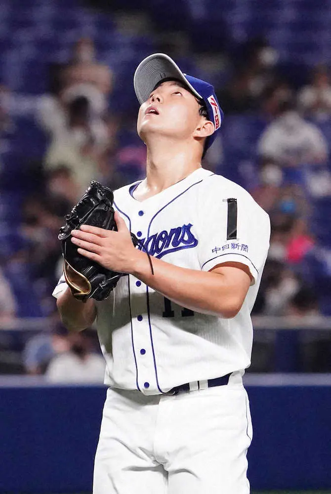 今月3日に亡くなった木下雄介投手が登場曲として使用していた湘南乃風の「黄金魂」が流れる中、マウンドへ。与田監督も「球もある程度、低めに集まっていた」と評価した。