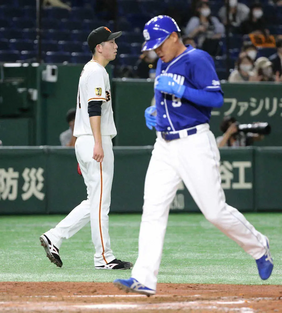 ここまで8勝を挙げている戸郷が突然乱れた。4回まで3連続を含む4三振を奪う完全投球。打線も坂本、大城の2発などで4得点と援護し、9勝目に視界良好だったはずの5回だった。ビシエドを右飛に打ち取って1死としてから福留に直球を右中間二塁打されて初安打を許すと、続く高橋周にも直球を右翼線二塁打されて失点。すると、大野奨、溝脇を連続四球で歩かせ、1死満塁とピンチを広げた。ここで打席には相手先発左腕・小笠原の代打に出たA・マルティネス。1ボールからの2球目が押し出し死球となると、ここで無念の降板となった。勝利投手の権利まであと2死だった。