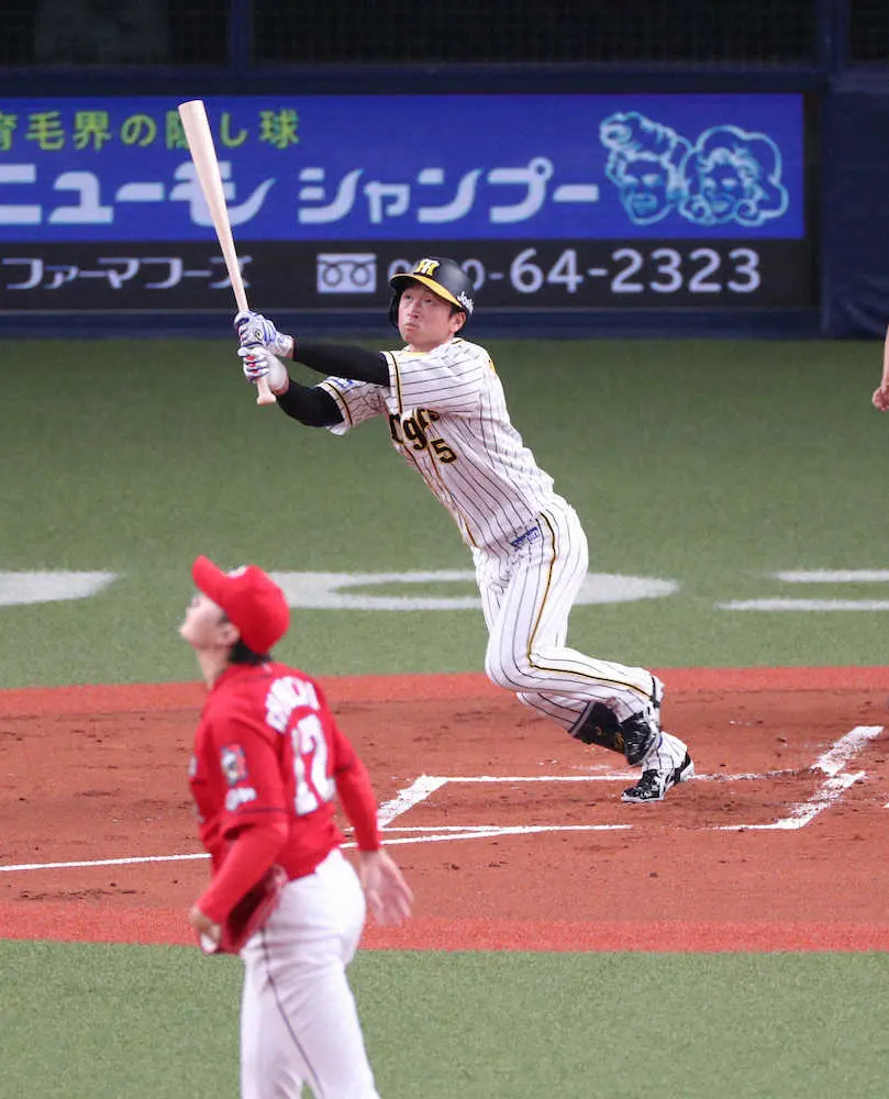 阪神は近本の先頭打者アーチで先制した。カウント3―1から広島・大道の147キロ直球を完璧に捉え右翼席に運んだ。