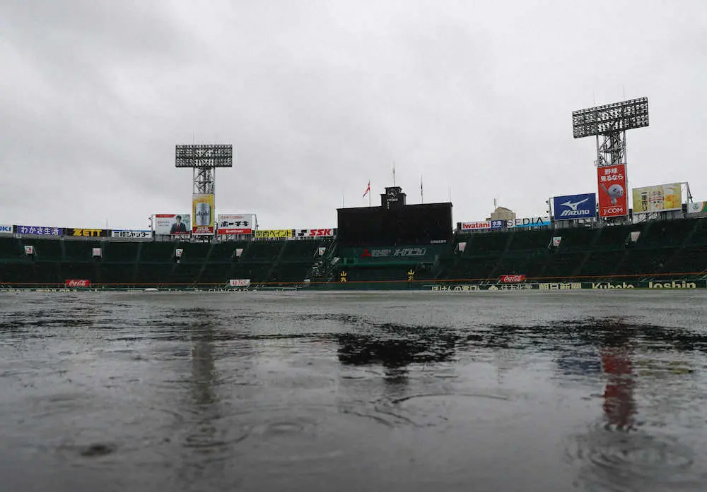 <第6日・雨天順延> 雨天順延となった甲子園球場 (撮影・後藤 大輝)