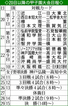 この日の第1、第2試合の順延を含め、史上最多の7度目の順延となった。日程消化の後押しにもつながるサスペンデッドゲームの導入は、昨年から議論されてきただけに、くしくも今大会を襲った長雨が、議論を加速させることになりそうだ。(川島 毅洋)