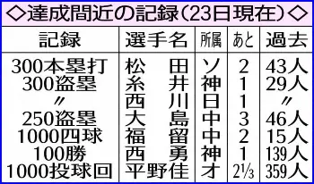 達成間近の記録(23日現在) Photo by スポニチ ヤクルト・清水 2年連続HP王見えた!防御率3・24 チーム救援陣の中心 ギャラリーで見る この記事のフォト 2021年08月24日の画像一覧 もっと見る 2021年08月24日の画像をもっと見る