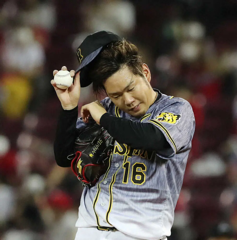 5、6回は無失点でしのぎ、7回の攻撃で代打を送られて降板。最後まで味方の逆転を信じてベンチから声を飛ばしたが、願いは通じなかった。矢野監督は「苦しい場面が多かったけど、粘ってくれた」とねぎらったが、6月18日巨人戦での4勝目で大台に王手をかけてから6連敗。長いトンネルをなかなか抜け出せず、我慢の時期が続く。(阪井 日向)
