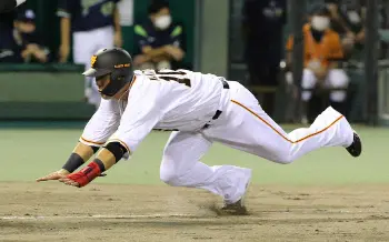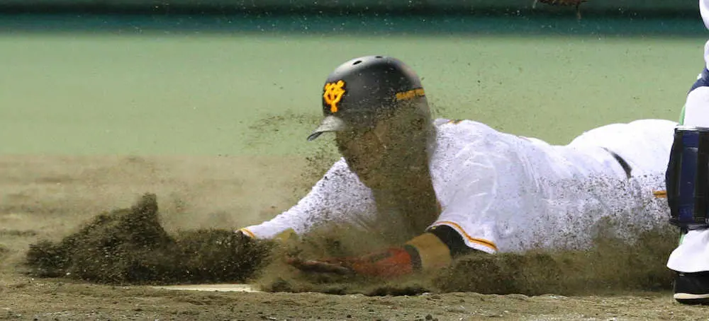 日本ハムから無償トレードで巨人に移籍した中田翔内野手(32)が、ヘッドスライディングで生還した。
