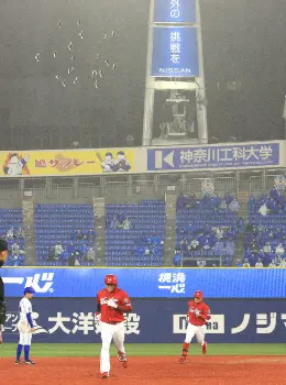 横浜スタジアムで珍事が起こった。試合終盤からグラウンド上空を数十羽の鳥が飛び始め、8回裏のDeNAの攻撃中に守る広島内野陣の頭上近くの低空で飛んだために試合が中断。2死一塁でDeNAの代打・蝦名のカウント1―1の場面で試合は4分間ほどストップし、その間にマウンドへ土を入れるなどグラウンド整備を行った。