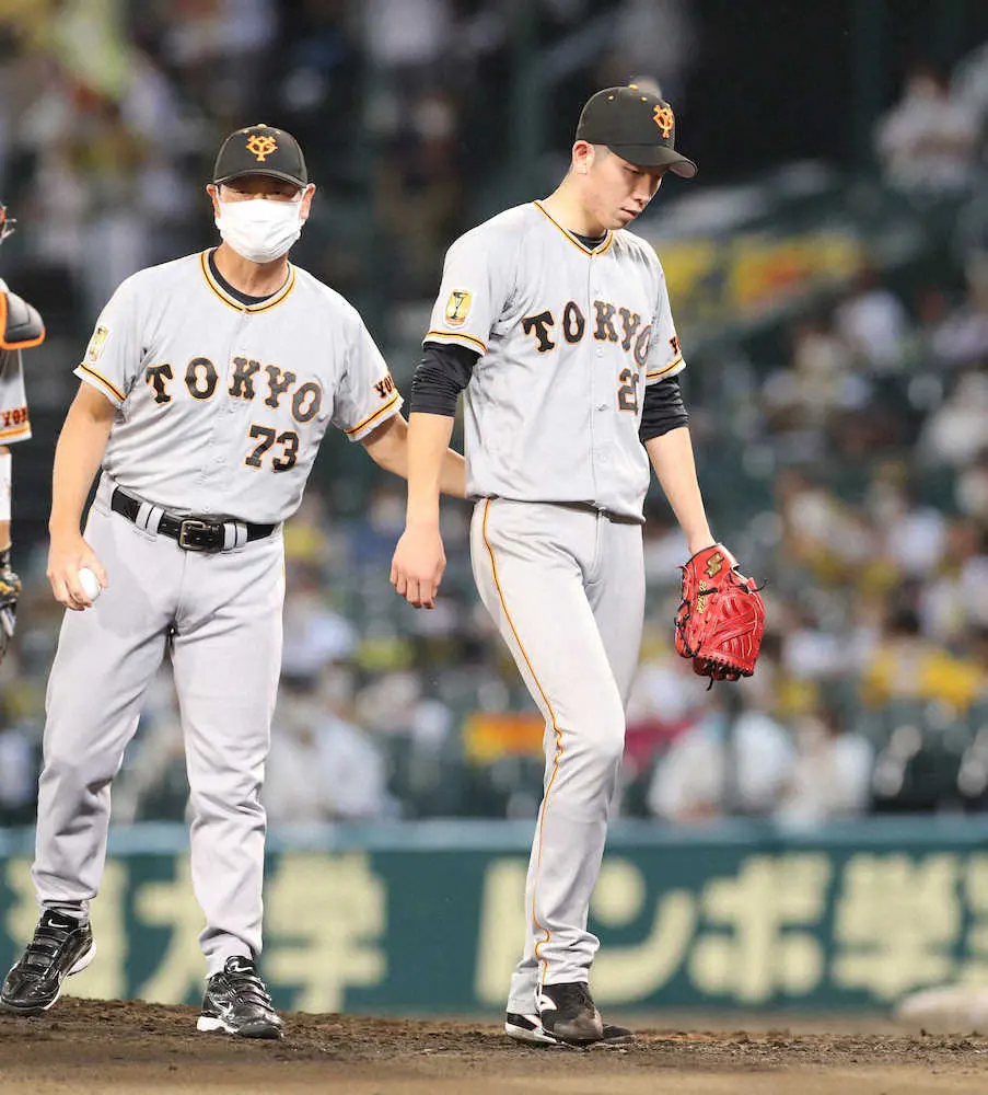 だが、3―0で迎えた6回に先頭・大山に初安打を許した戸郷は続く代打・糸井に右中間へ二塁打を打たれて1点を失うと、7回には1死からマルテ右翼線二塁打、ロハス・ジュニア四球、糸原中前打で満塁のピンチを招き、大山に初球を左翼線二塁打されて3―3の同点。ここでマウンドを2番手左腕・高梨に譲り、勝利がなくなった。その後、3番手右腕・鍵谷が2死目を取った後、この回4人目の左腕・大江が中野に満塁の走者一掃となる右翼フェンス直撃三塁打を打たれ、原監督の執念采配も実らず。8回には5番手左腕・戸根も2死からロハス・ジュニアへの死球をきっかけに小幡、大山に連打されて1点を失った。
