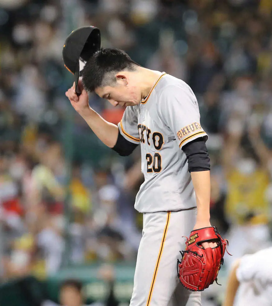だが、3―0で迎えた6回に先頭・大山に初安打を許した戸郷は続く代打・糸井に右中間へ二塁打を打たれて1点を失うと、7回には1死からマルテ右翼線二塁打、ロハス・ジュニア四球、糸原中前打で満塁のピンチを招き、大山に初球を左翼線二塁打されて3―3の同点。ここでマウンドを2番手左腕・高梨に譲り、勝利がなくなった。その後、3番手右腕・鍵谷が2死目を取った後、この回4人目の左腕・大江が中野に満塁の走者一掃となる右翼フェンス直撃の三塁打を打たれて戸郷の失点は5となった。