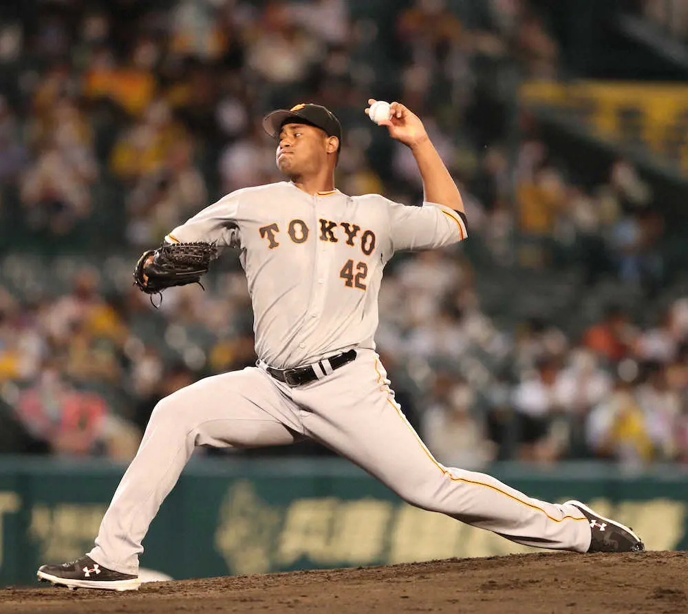 <神・巨>力投する巨人先発・メルセデス(撮影・平嶋 理子)