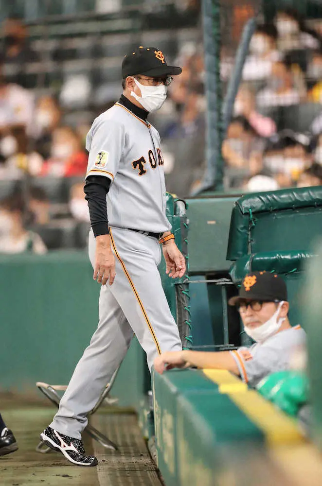<神・巨>選手交代を告げた原監督(撮影・成瀬 徹)