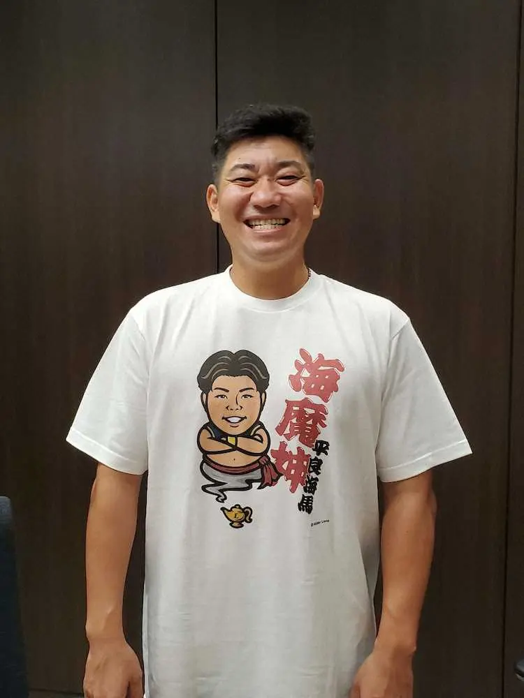8月中は本業のライオンズアカデミーコーチに全力投球する傍ら、ひそかに“グッズプロデューサー”としてライオンズの新作グッズの制作に取り組んでいた同コーチ。「自分として、納得できるグッズの数々が出来上がったと思います。完璧です!」という自信作の内訳は、平良海馬のフェイスタオルや朋己コーチ注目の「若獅子」選手をデザインしたタオル、同期入団の増田達至と金子侑司のニックネームグッズをはじめ、自身が命名した平良の「海魔神」グッズなどもラインナップに入った。