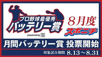 8月度バッテリー賞投票開始!20年の年間最優秀バッテリー、ソフトバンク千賀&甲斐が復活ノミネート!