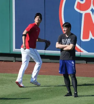 大谷&有原が17年以来のキャッチボールで交流 有原「懐かしい。相変わらずきれいな良い球」