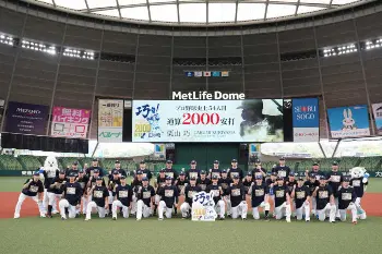 西武 本拠地で栗山2000安打を祝福 全選手が記念Tシャツ着用、西武球場前駅では“くす玉”も