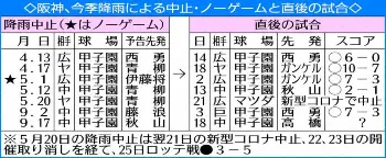 当初は中日2連戦で大野雄、柳と対戦予定だった。中止を受けて、18日は大野雄が先発としてスライド登板。今季の阪神戦2試合で1勝、防御率0・00を誇っていた柳との対戦が、回避されることになる。天も味方につけた矢野阪神が、首位独走へ向けて甲子園で再発進を狙う。(山本 浩之)