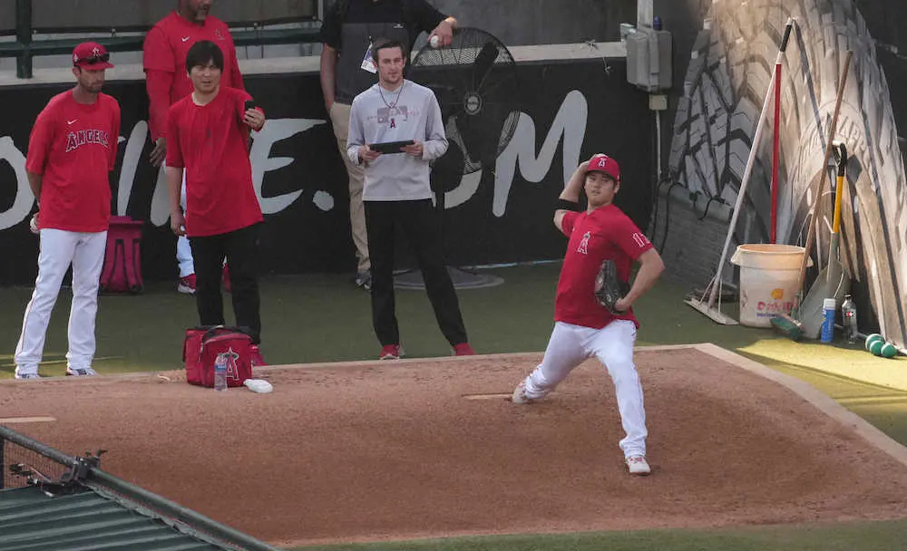試合前のブルペン投球。大谷は直球のほかにスライダー、カットボール、スプリットを含め32球を力強く投げ込み、回復を猛アピールした。マット・ワイズ投手コーチはマドン監督に「“フルゴリラ(全力で投げ込む投球練習)”のようだった」と報告。本人に意思確認した指揮官は、試合後に経緯を明かした。
