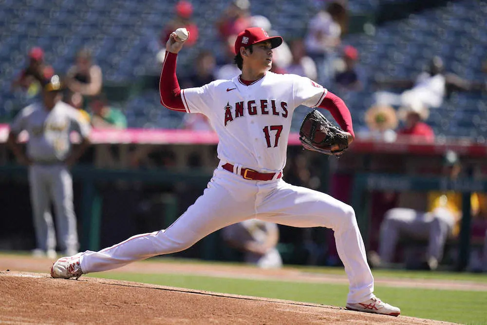 アスレチックス戦に先発したエンゼルス・大谷(AP)
