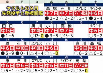 シーズン佳境を迎え安定感を増す投手陣が「ヤク進」を支えている。今季8度目の零封勝利。疲労がピークになるはずの今月に入ってから実に3度目だ。高津監督は「ファームから上がってきた人が好投するのは、戦力の底上げを考えても凄く大きい。今年は何人かポッと出てくれるので非常に助かっています」と、うなずいた。