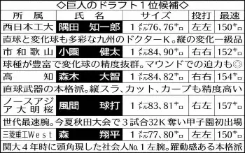 巨人 西日本工大の150キロ左腕・隅田をドラ1にリストアップ 市和歌山・小園、高知・森木も1位候補に