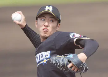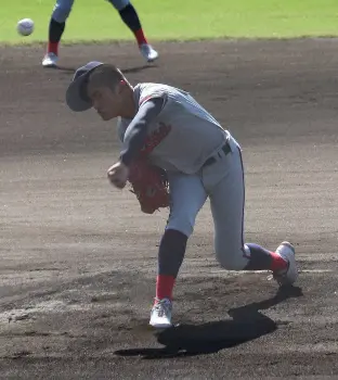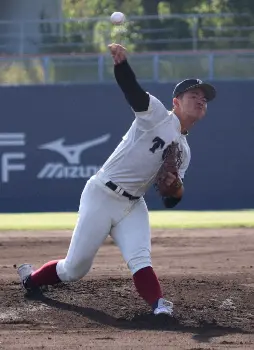 グラブ内側には『飛ぶぞ!』の刺しゅうが潜む。そのフレーズはABCテレビ「相席食堂」から拝借した。同番組内で元プロレスラーのタレント・長州力が、食べたホタテのあまりのおいしさに「食ってみな、飛ぶぞ」とコメント。その独特な言い回しが面白く、グラブにまで刻みつけたわけだ。ただし、試合では「飛びにくい」低めの球を駆使し、相手打線に凡打の山を築かせる投球が身上だ。