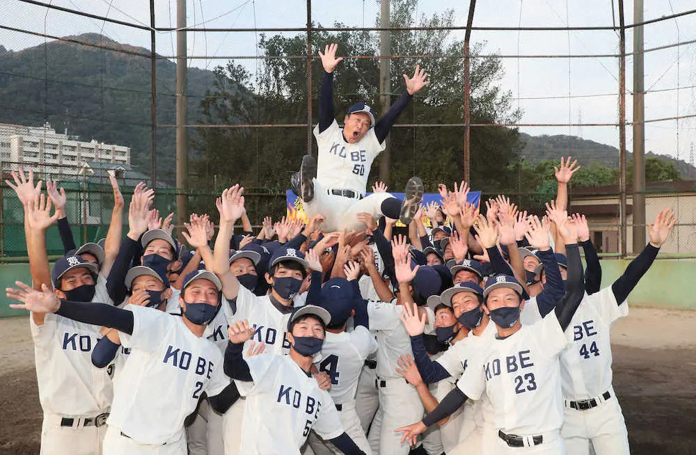 六甲の山なみに夕日が沈んだ午後5時すぎ、神戸・六甲台グラウンドに集まった神戸大は中井明則監督(51)を胴上げした。前日に全日程を終え、大阪・南港中央野球場で優勝――和歌山大の敗戦――を見届けた。相手を思って静かに去り、母校に帰って喜びを爆発させた。