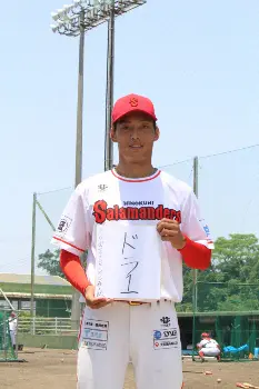 今年から活動を開始した、九州アジアリーグ初のプロ野球選手が誕生する。熊本市に本拠を置く、火の国サラマンダーズの石森だ。「ワクワクした気持ちです。早く来てくれ、早く来ないかな、という思いでいます」と胸を高鳴らせた。