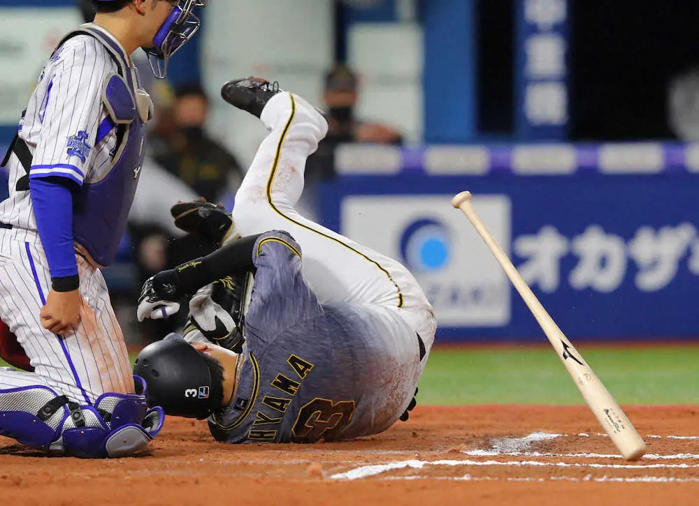3―2の6回先頭で打席に立つ、ロメロの投じた一球が左脇腹付近を直撃。その場で倒れ込み、痛がるそぶりを見せたものの、自力で歩きベンチ裏へ。治療を受けた後、軽快に一塁へ向かい、幸い、大事には至らなかった。