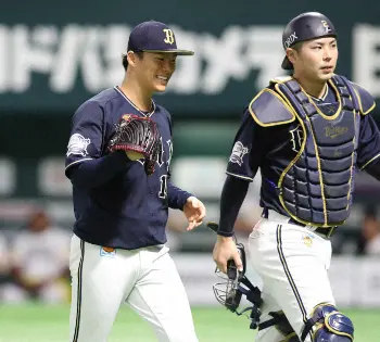 <ソ・オ>3回2死一塁、川島を三ゴロに抑え笑顔でベンチに戻る山本(右は若月)(撮影・岡田 丈靖) Photo by スポニチ オリックス・由伸、球団最多タイ14連勝!8回2失点の好投で17勝目 25年ぶ… ギャラリーで見る この記事のフォト 2021年10月09日の画像一覧 もっと見る 2021年10月09日の画像をもっと見る