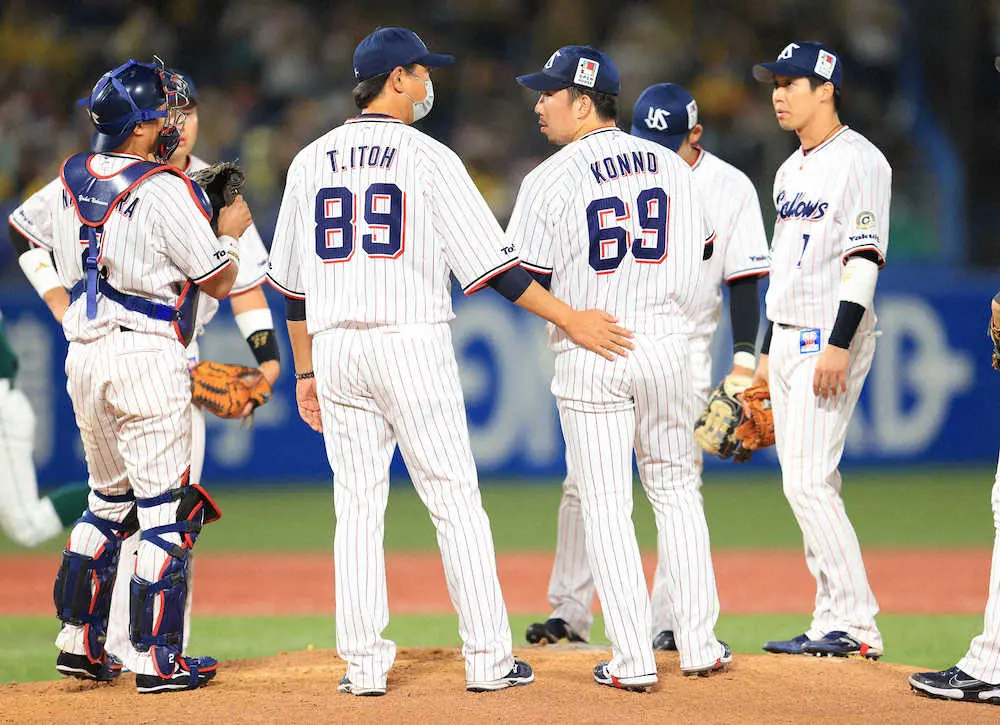<ヤ・神>4回2死一、二塁、ピンチをしのいでグラブを叩く高橋(撮影・北條 貴史) Photo by スポニチ ヤクルトの連勝が7でストップ マジック11のまま 最短Vは17日に ギャラリーで見る この記事のフォト 2021年10月09日の画像一覧 もっと見る 2021年10月09日の画像をもっと見る