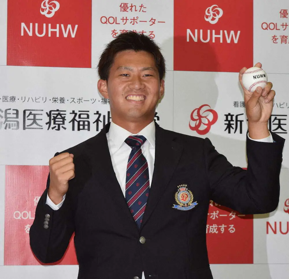 埼玉・本庄東時代は無名の存在だったが、大学進学後に才能が開花。2年秋の平成国際大戦では延長10回参考記録ながらリーグ最多に並ぶ18奪三振。今春に球速も大台に達するなど上昇曲線を描く。