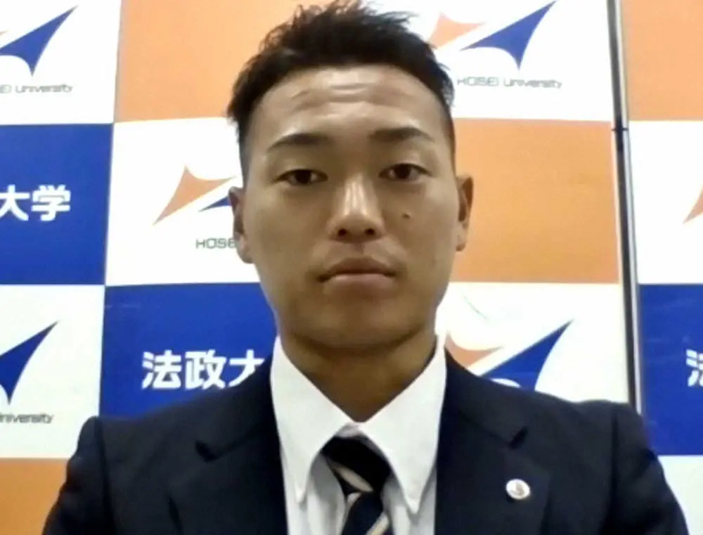 DeNAに4位指名された法大の三浦銀二は、最速150キロ右腕は「開幕から先発ローテーション入りを目指して、1軍で投げられるように頑張っていきたい」と力を込めた。
