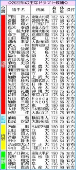 その他、大学生では専大・菊地、立大・荘司、上武大・加藤、沖縄大・仲地ら伸びしろが期待できる右投手がそろう。野手では早大・蛭間が筆頭。1年春からリーグ戦に出場し、現在10本塁打をマークする強打の左打ちの外野手だ。