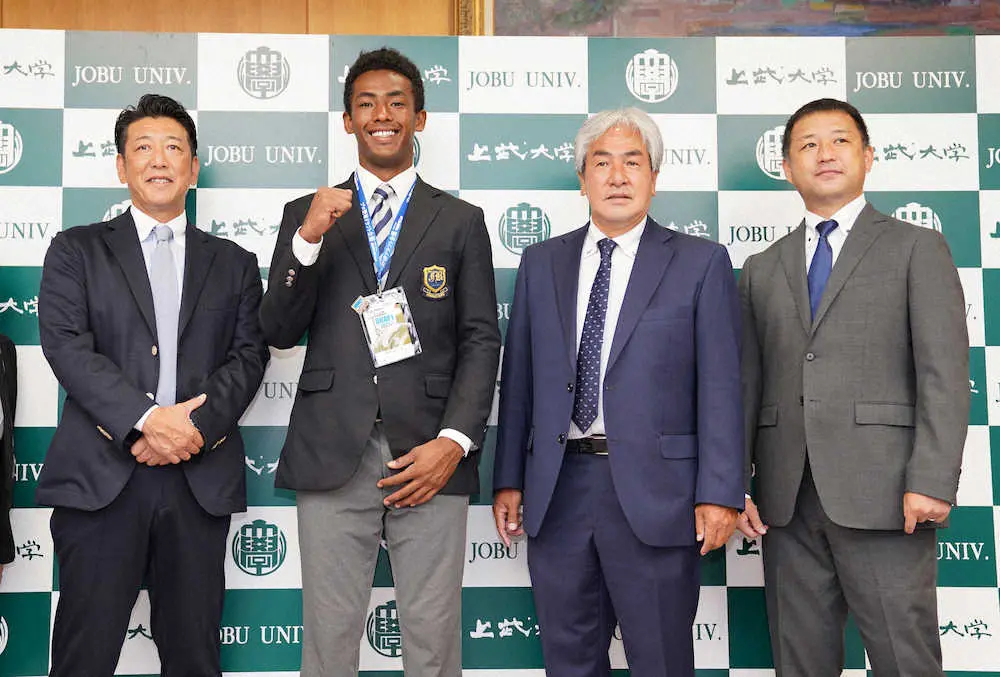 中日のドラフト1位、ブライト健太外野手(22=上武大)が12日、群馬県伊勢崎市内の同大施設で中日・松永幸男編成部長らから指名挨拶を受けた。