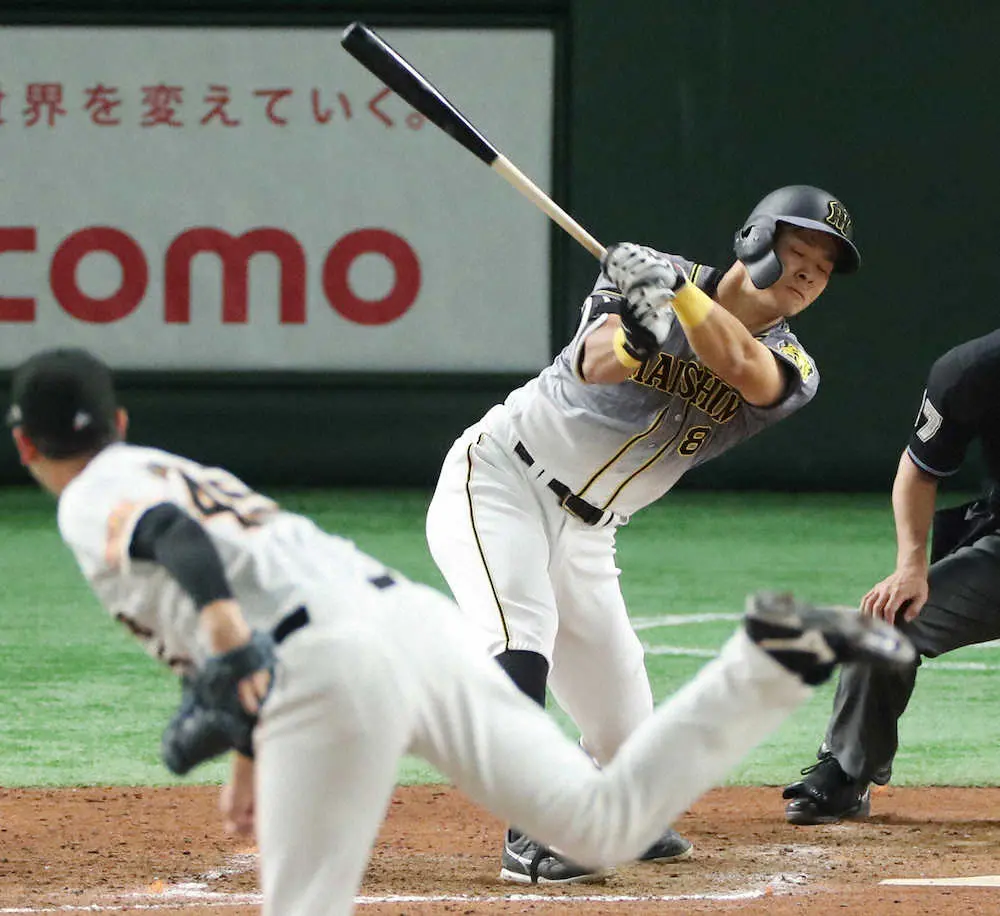 代打で出場の阪神・佐藤輝 近大の先輩・畠との対戦は空振り三振 シーズン166三振は球界9位タイ